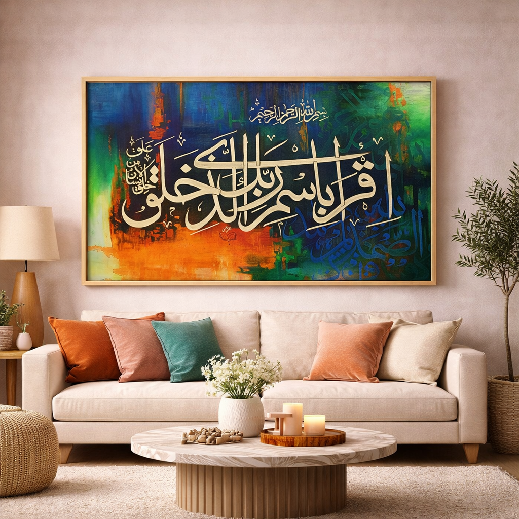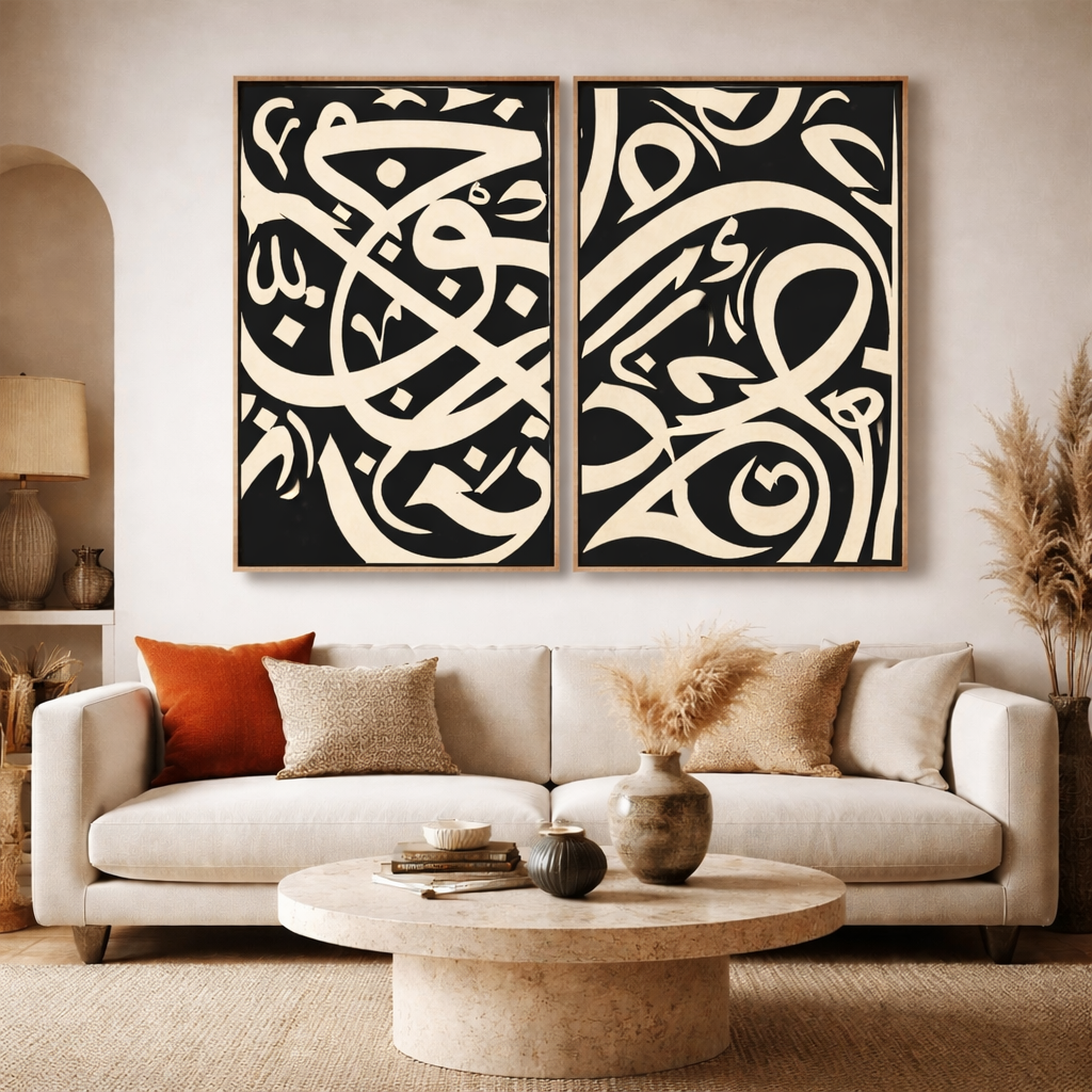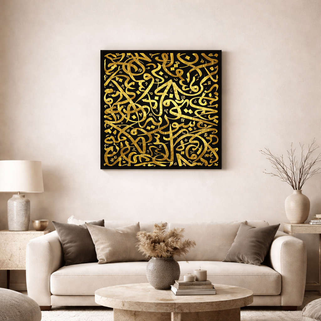 Découvrez la beauté intemporelle de la calligraphie islamique. Chaque tableau célèbre l'art sacré de l'écriture arabe avec des versets coraniques, des hadiths et des citations inspirantes, alliant spiritualité et esthétique.