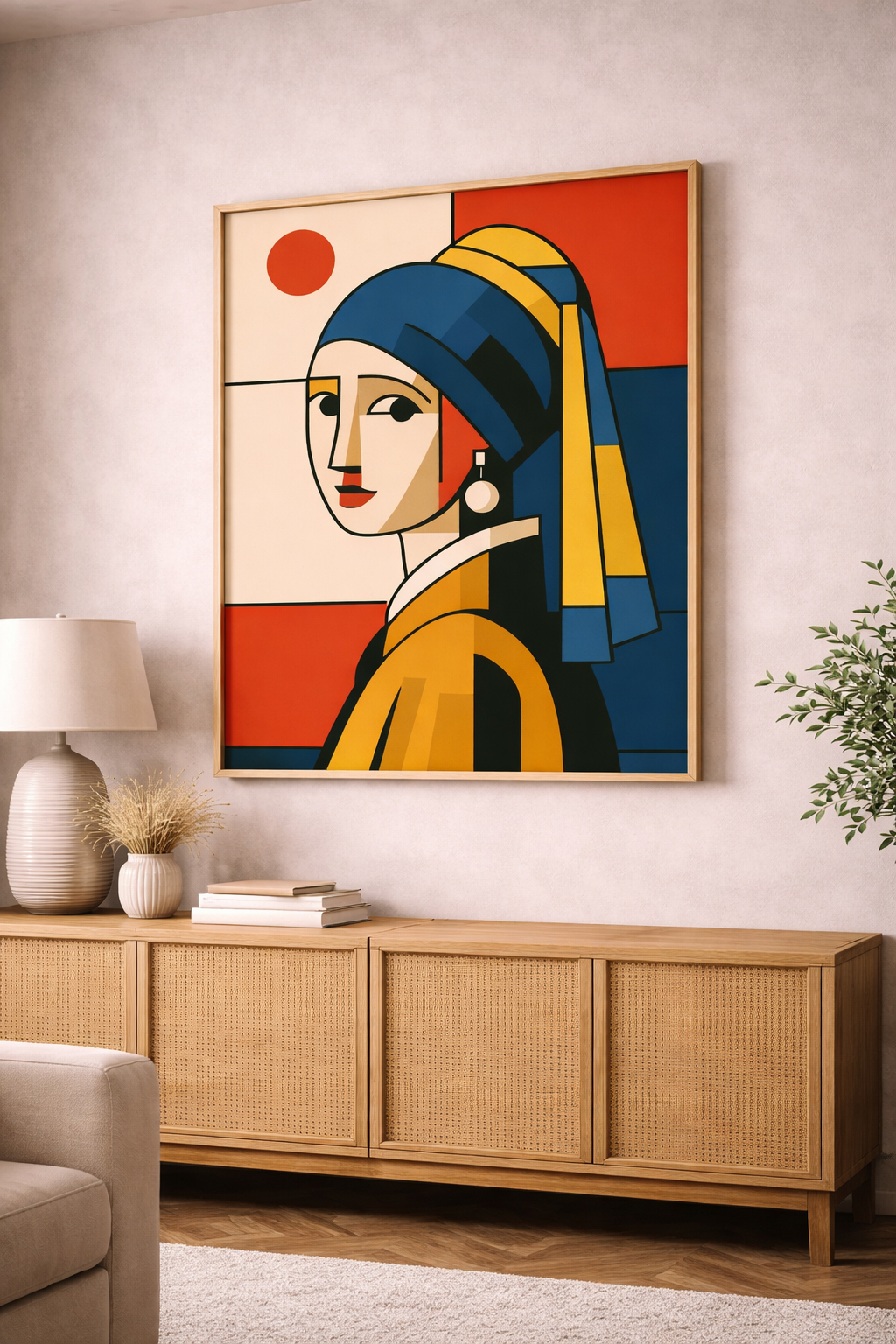 Cette œuvre contemporaine revisite le portrait féminin à travers un style géométrique audacieux et une palette de couleurs vives et équilibrées. Les lignes nettes et les contrastes de bleu, jaune et rouge apportent caractère, modernité et sophistication à la composition. Parfaite pour un salon ou un intérieur design, Muse Géométrique devient une pièce forte qui attire le regard et sublime l’espace avec originalité et élégance.