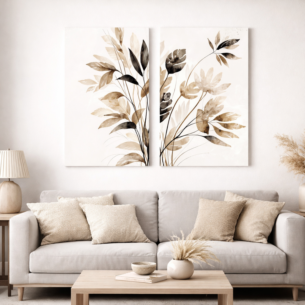 Sublimez votre intérieur avec ce duo de tableaux botaniques aux tons beige et noir. Son style épuré et naturel apporte douceur, élégance et harmonie à un salon moderne, une chambre apaisante ou une décoration bohème chic.
